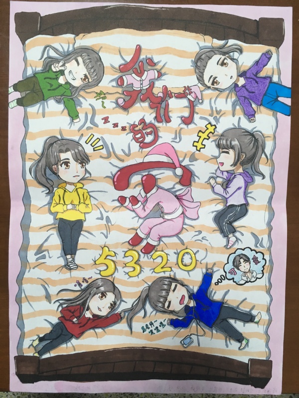 同学们凭借丰富多彩的想象力,运用多变的线条与独特的配色,围绕“寝室”这一主题设计出了一幅幅主题鲜明、富有创意的海报。其中,5320寝室的参赛作品版面完整均衡,色调搭配和谐,视觉识别性强,具有新颖性、独特性,获得比赛的一等奖。