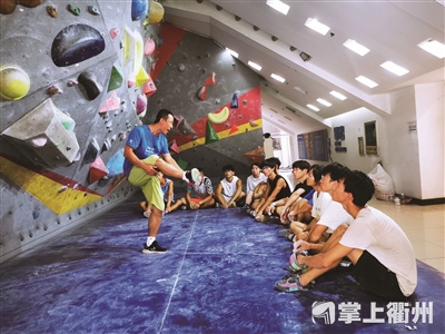 “现在是暑假,每天只需要指导校攀岩队训练,以及给衢州市攀岩队上课。”王俊舰告诉记者,平时他还要上学校的体育攀岩选修课、休闲体育专业的攀岩专业课以及校攀岩社团的社团课,有时还会兼上一些篮球、足球等其他类型的体育课。